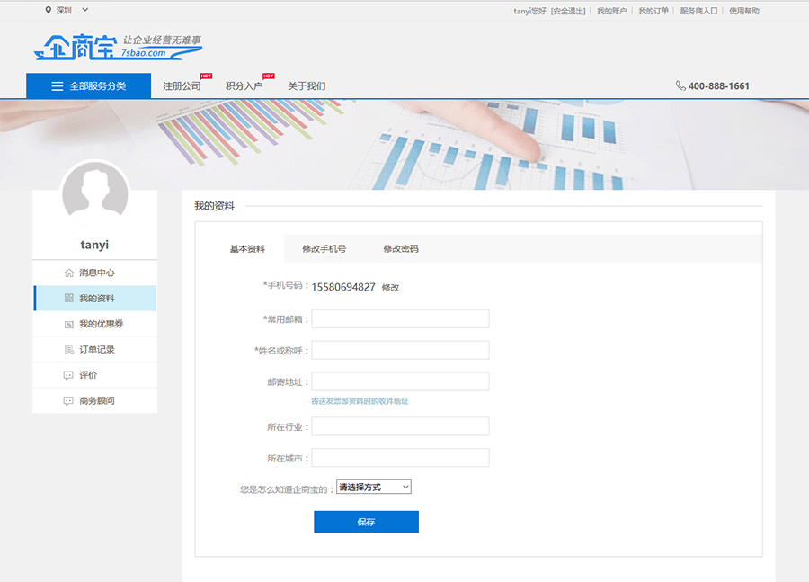 3)点击用户名,进入“个人信息”页面,完善个人资料。